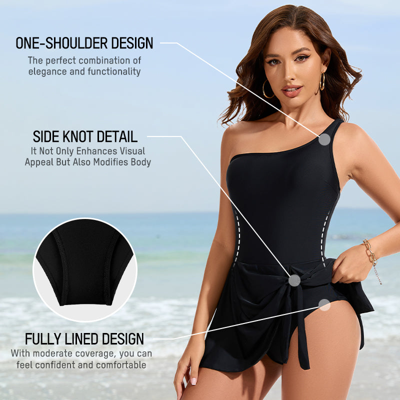 One Shoulder Skirted One Piece Swimsuit